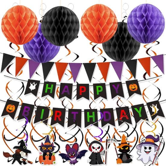 Pripremite svoj dom za najstrašniju noć u godini uz ovaj sveobuhvatni set dekoracija za Noć vještica. Ovaj pažljivo osmišljen paket od dvadeset i jednog elementa omogućuje vam stvaranje potpunog vizualnog okruženja koje će oduševiti sve goste i posjetitelje. Set uključuje klasične motive bundeva i duhova koji, u kombinaciji s girlandama i visećim ukrasima tipa saće, stvaraju upečatljiv trodimenzionalni efekt u svakom prostoru. Dekoracije su izrađene u tradicionalnim crno-narančastim bojama, savršeno se uklapajući u atmosferu kućnih zabava, školskih plesova ili uređenje ugostiteljskih objekata. Zahvaljujući laganoj konstrukciji od papira i kartona, montaža ukrasa na strop, zidove ili prozore brza je i jednostavna, a vaš će prostor trenutačno dobiti karakterističan ugođaj koji spaja mračne motive s radosnim blagdanskim duhom. Materijali su odabrani kako bi osigurali stabilnost oblika tijekom cijelog trajanja proslave.