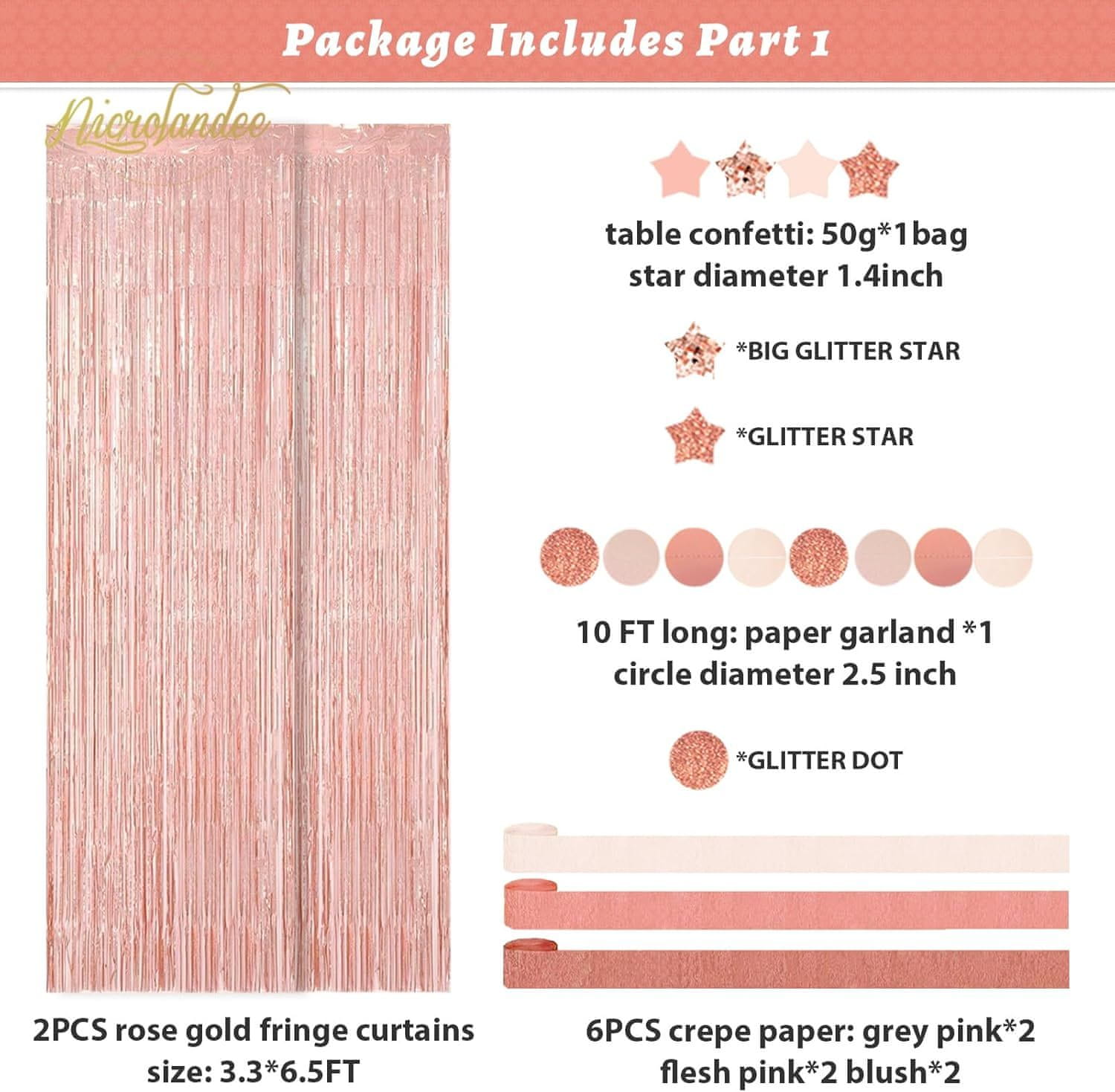 Nikcorp Set dekoracija za vjenčanje i rođendan, 22 dijela, ružičasto zlato, folijske zavjese, lampioni, pomponi i konfeti za proslave