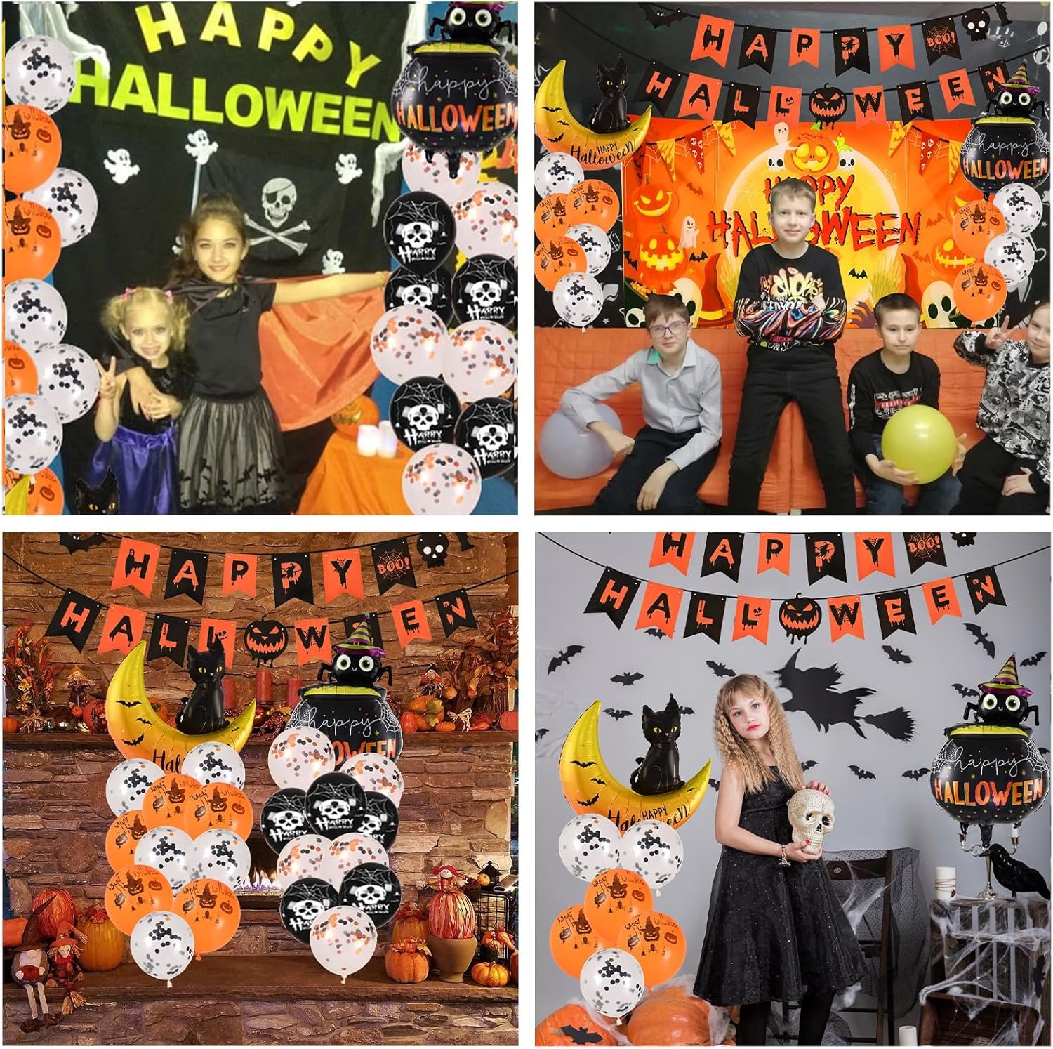 - Sadržaj seta: natpis, 12 šišmiša, 2 folijska balona (crna mačka/mjesec i pauk), zidna pozadina, 20 balona, 13 rekvizita za fotografiranje, trake i vrpce za montažu.