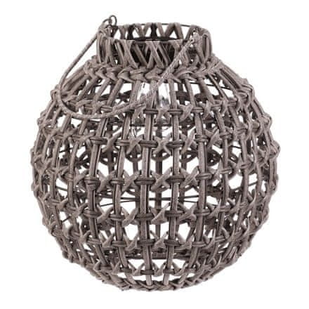 Lanterna od poliratana u sivoj boji ima okrugli oblik i opremljena je LED rasvjetom koja stvara ugodnu atmosferu. Isprepleteni dizajn dodaje lakoću i zanimljivu teksturu dekoraciji, dok unutarnje LED svjetlo osigurava učinkovitu i ekonomičnu rasvjetu. Zahvaljujući praktičnoj ručki, lampa se može lako nositi ili objesiti. Pogodna je za vanjsku i unutarnju upotrebu, gdje će naglasiti stilski raspored prostora. LED rasvjeta se napaja 1 x AA punjivom baterijom i solarnim panelom koji se nalazi na gornjem rubu.