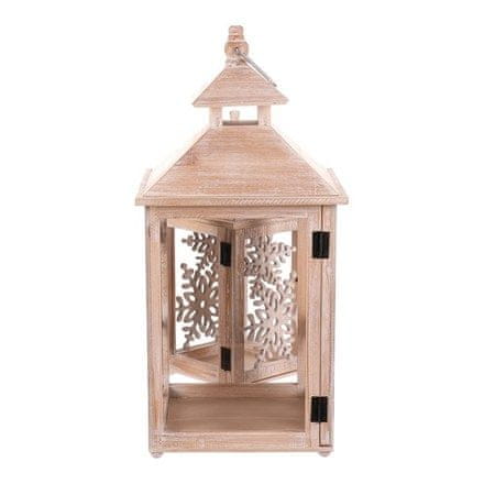 Drveni lampion s urezanim uzorkom pahuljica unijet će bajkovitu zimsku čaroliju u vaš dom. Prirodna boja drva s prekrasnom teksturom daje ukrasu rustikalni dodir. Set uključuje dvije veličine, od kojih je svaka opremljena metalnim prstenom za vješanje. Nakon umetanja svijeće, stvorit ćete prekrasnu igru ??svjetlosti, bilo da je postavite na stol ili objesite.