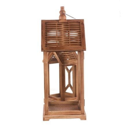 Drveni lampion u obliku kućice u setu od dva komada različitih veličina savršen je za svaki interijer ili eksterijer. Potpuno drvena konstrukcija u prirodnoj boji nadopunjena je velikim prozirnim staklima sa svih strana, koja vam omogućuju da u potpunosti uživate u svjetlosti svijeća. Elegantna vrata doprinose praktičnosti, dok mala metalna ručka na krovu omogućuje jednostavno nošenje.