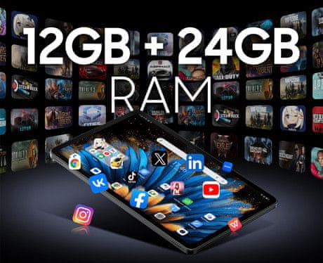 Brzi i moćni MediaTek G100 procesor osigurava munjevito brz odziv prilikom obavljanja zadataka, igranja igara i gledanja videa. Tu je ugrađena memorija od 12 GB RAM-a za zadatke i 256 GB ROM-a za pohranu.
