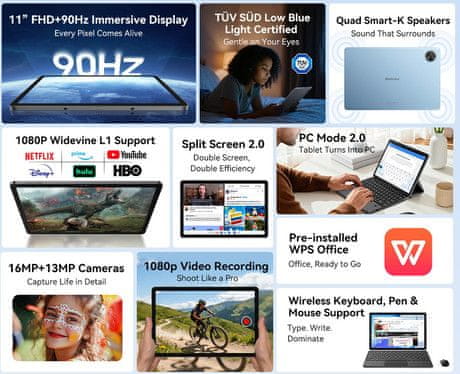 - 11" FHD+ zaslon – uživajte u autentičnim bojama i oštrim detaljima na 1920×1200 px rezoluciji.