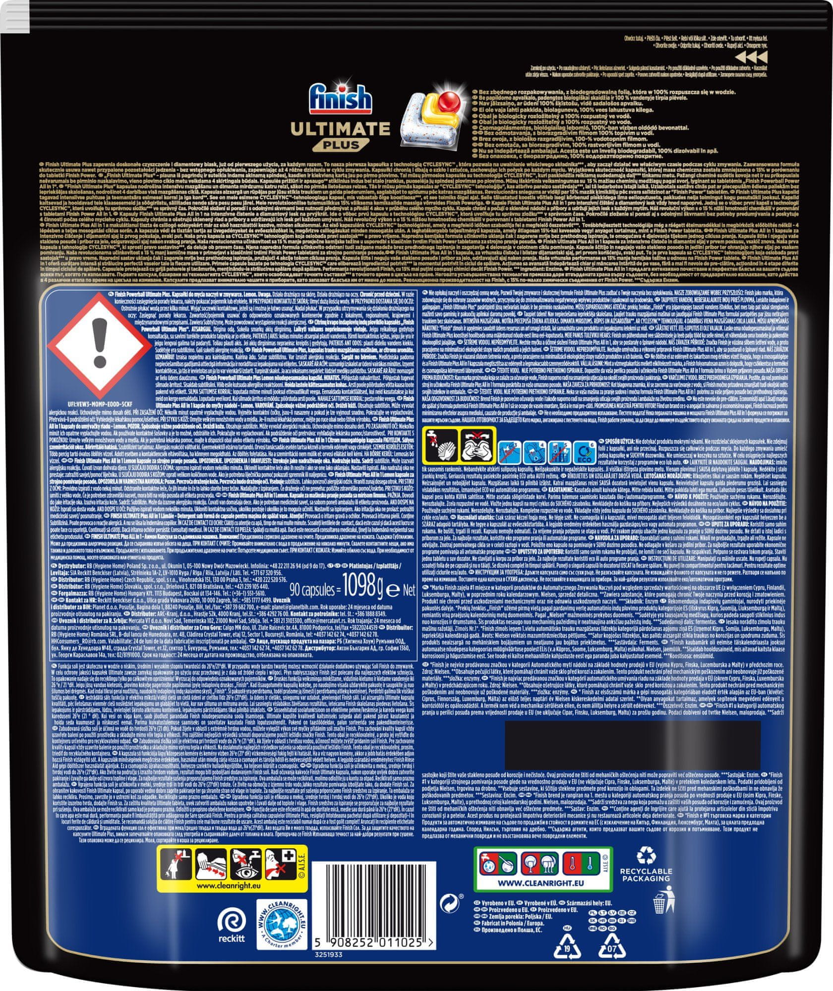 - Pakiranje kapsule je biorazgradivo i 100 % topivo u vodi s 25% manjim kemijskim opterećenjem u usporedbi s pakiranjem Finish Power.
