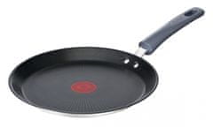 Tava za palačinke Tefal Simply Clean 25 cm B5671053, s neprianjajućom površinom Titan, izvrstan je pomagač za ukusnu pripremu klasičnih, rižinih, ječmenih i ostalih palačinki. Termo-signalni indikator topline mijenja boju i tako znate kada je tava optimalno zagrijana za najbolje rezultate kuhanja. Površina posude je 100% sigurna i ne lijepi se. Tava Simply Clean kompatibilna je sa svim pločama za kuhanje, osim indukcijskim.