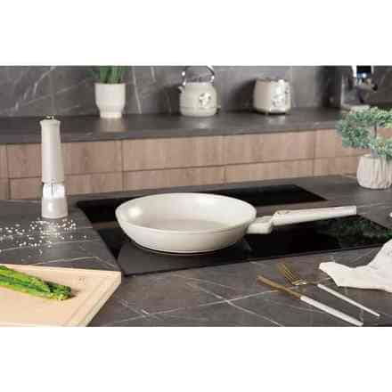 - Materijal: kovani aluminij s titanPro neprianjajućim premazom – Dimenzije: promjer 28*5,2 cm 2,4 l – Boja: mat krem – troslojni izdržljivi titanPro neprianjajući premaz – Ergonomska ručka Soft.