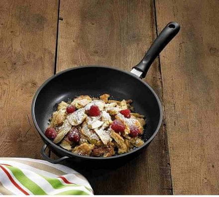Tava Kela KL 11567 Serija Kerros izrađena je od čvrstog lijevanog aluminija s debljinom stijenke 5 mm. Posebna značajka kvalitete: 6-zvjezdasta neprianjajuća površina GREBLON-C3+. Troslojni.