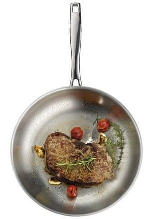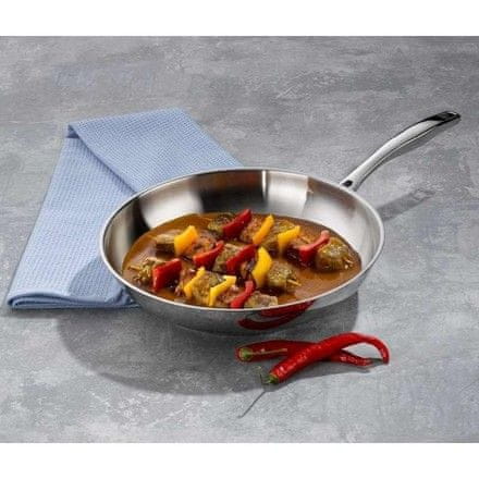 - visokokvalitetni nehrđajući čelik 18/10 – izvrsna svojstva za kuhanje, prženje, pirjanje i pečenje – dimenzijski stabilno posuđe s čvrstom konstrukcijom koja se može puno zagrijati – višeslojno.