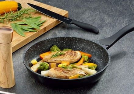 Korištenjem posuđa i pribora za prženje s neprianjajućom površinom postići ćete optimalne rezultate i zajamčeno ćete dočarati svoja najbolja jela. Priprema obroka bez upotrebe masnoće u skladu je s duhom zdrave prehrane. Dodavanje čak i male količine masnoće osigurava da ništa ne zagori niti se zalijepi. Posebno razvijena površina jamči izvrsna svojstva protiv lijepljenja, zahvaljujući kojima možete kuhati i pržiti s malo masnoće te prati posuđe posebno lako i jednostavno.