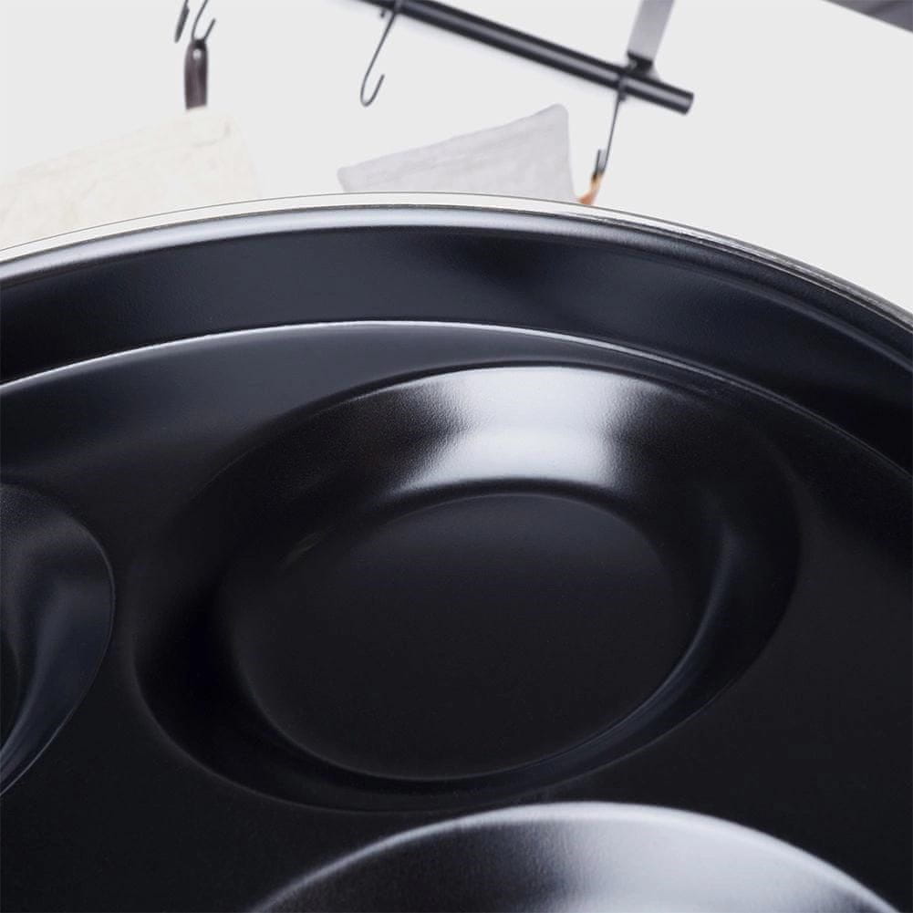 Izrađena od visokokvalitetnog nehrđajućeg čelika s premazom koji se ne lijepi, ova posuda omogućuje ravnomjerno i učinkovito provođenje topline za jednostavno pečenje bez lijepljenja. Dizajniran je s 4 jažice, koje su idealne za pripremu četiri palačinke ili jaja istovremeno, čime štedite vrijeme i energiju.