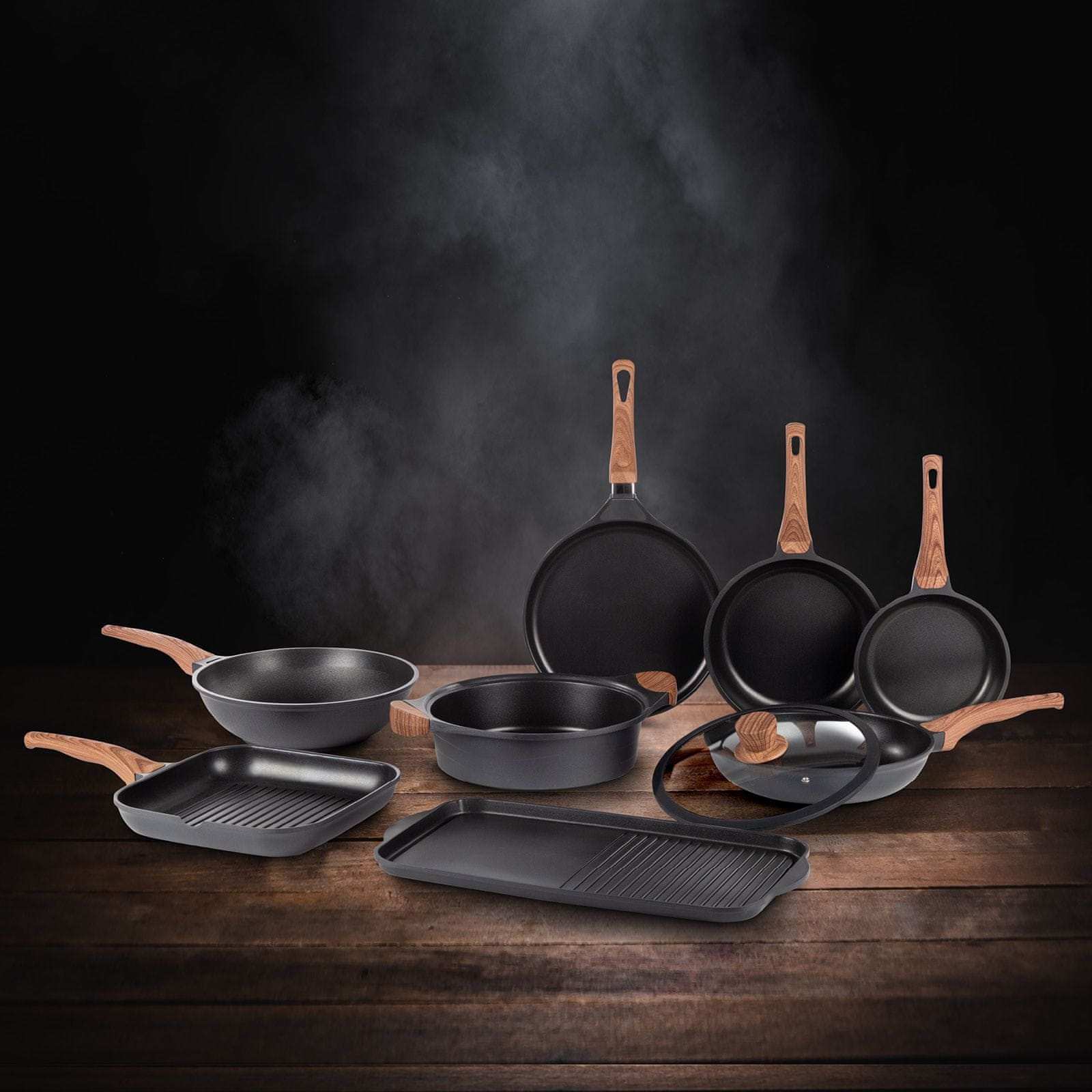 Rosmarino wok tava iz linije Black Line promjera 30 cm jedna je od vrhunskih posuda s inovativnim i tehnološki naprednim mineralnim premazom razvijenim u Njemačkoj. U tavi ćete zbog njene univerzalnosti moći pripremati razna jela, dinstati povrće, gratinirati, pržiti ili peći meso i ribu, pripremati rižote, umake ili stvarati razne slastice – sve u jednoj posudi. Rebrasta površina pruža karakterističan uzorak roštilja na hrani. Hrana tijekom kuhanja zadržava sve vitamine i minerale koji su potrebni našem tijelu. Ima bakelitnu ručku za bolji zahvat i ne pregrijava se tijekom kuhanja. Tava se može prati u perilici posuđa, a prikladna je za sve vrste ploča za kuhanje, uključujući indukcijske. Sve posude iz linije Black Line temelje se na višeslojnom sastavu, što osigurava dugi vijek trajanja i visoku otpornost spremnika.