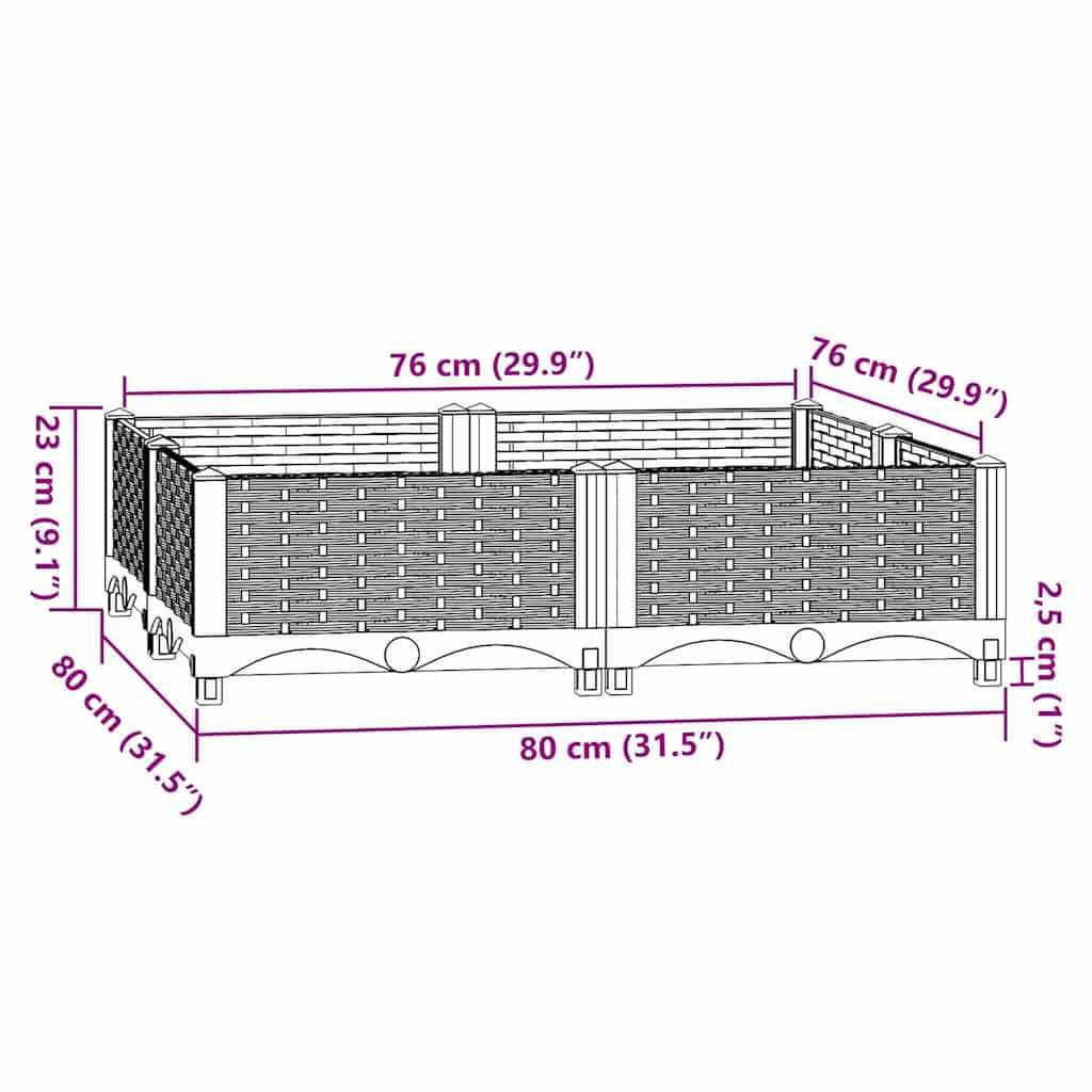 Vidaxl Povišena gredica 80 x 80 x 23 cm od polipropilena