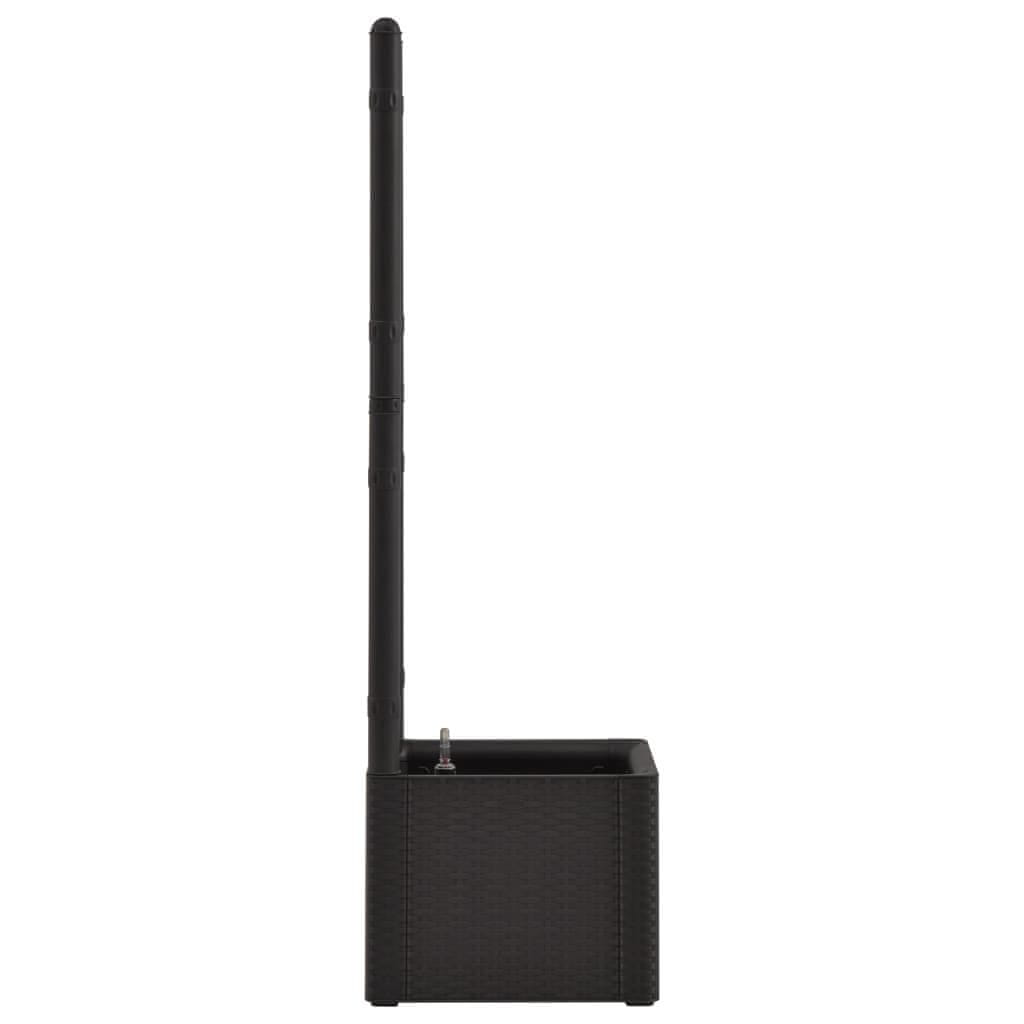 Ugrađena rešetka nudi izvrsnu potporu za biljke penjačice, poput bilja, rajčica, graha itd. Napravljena od robusne plastike otporne na UV zrake, vremenske utjecaje i mraz, prikladna je za unutarnju i vanjsku upotrebu. Dizajn podsjeća na varljivo stvarnu strukturu od ratana. Materijal se može prati i lako se čisti. Uz to, ova kutija može automatski zalijevati biljke izvlačeći vlagu iz svog spremnika za vodu od 35 L i ima otvore za prelijevanje vode kako bi se spriječilo prekomjerno zalijevanje. Uključen je indikator razine.