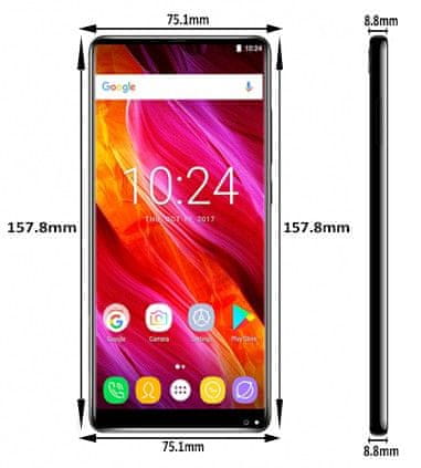 Ako više volite veliki zaslon s minimalnim okvirima, Oukitel Mix 2 je pravi izbor. Oukitel Mix 2 donosi zaslon veličine 5.99" s rezolucijom 1080×2160 FHD+, rubovi su znatno uži, kamere su manje. Mix 2 je dizajniran da udobno stane u ruku, dimenzije su 75.1mm širina, 157.8mm visina, 8.8mm debljina, dodirnite svijet bez rubova.