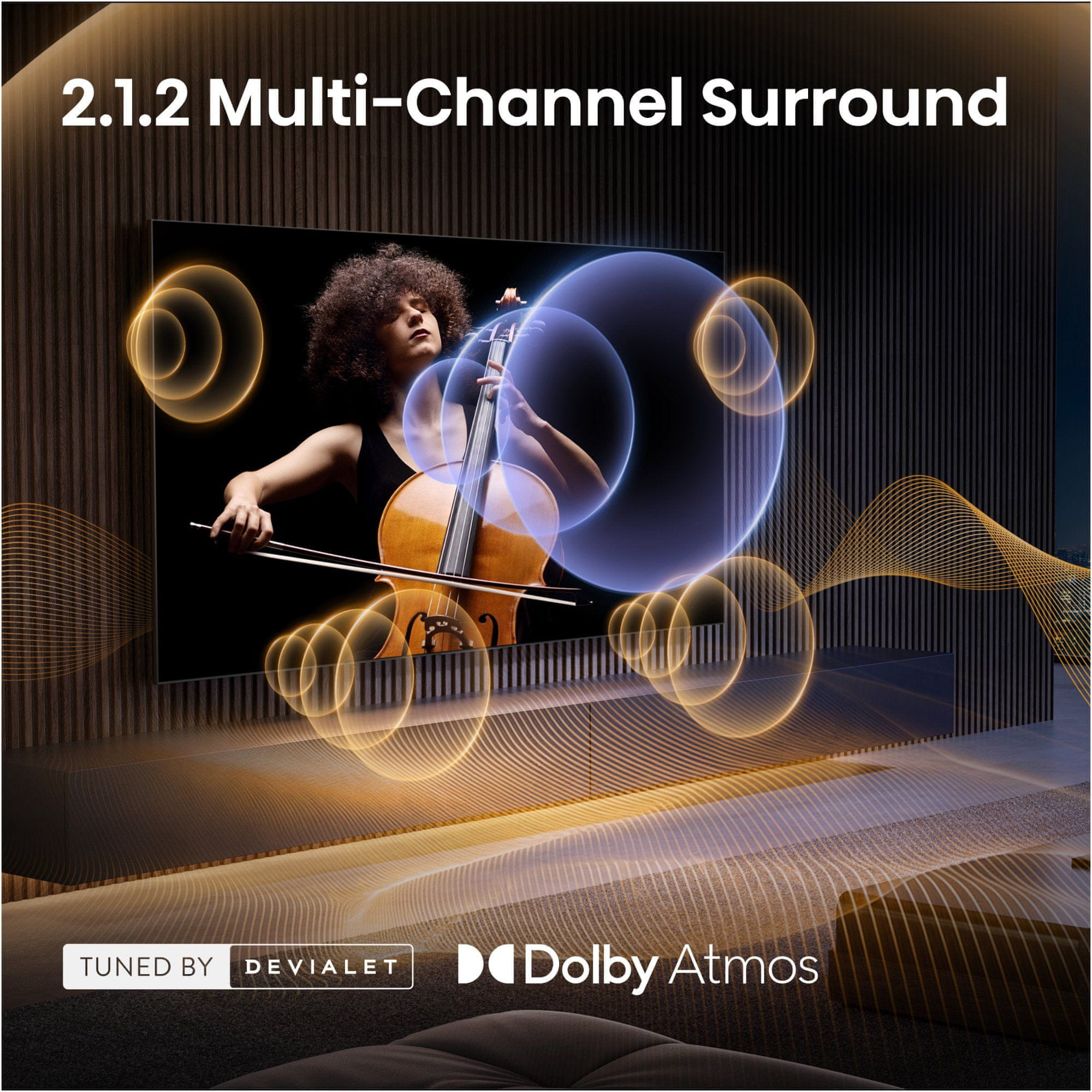 Zvučni sustav 2.1.2 Multi-Channel Surround i tehnologija Dolby Atmos potpuno vas uranjaju u događanja s bogatim, prostornim zvukom. Zvučna snaga iznosi 2 × 10 W + 20 W + 2 × 5 W.