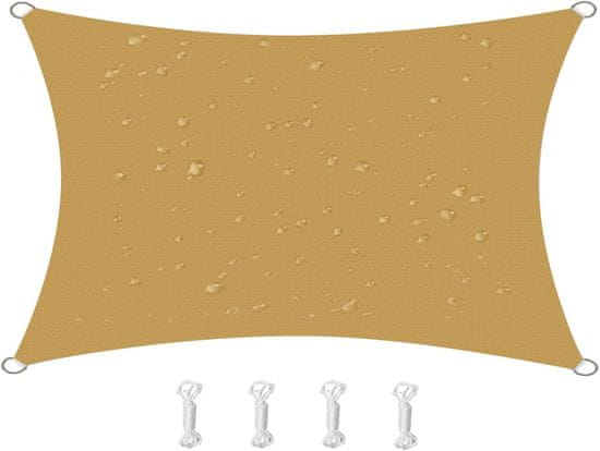 Žuto sjenilo za sunce HOMPER dimenzija 3×4 m predstavlja učinkovitu zaštitu od sunčevog zračenja i elegantan dodatak svakom vrtu. Izrađeno od poliestera visoke gustoće, odlikuje se izdržljivošću i otpornošću na kidanje. Tkanina propušta zrak, osiguravajući ugodnu hladovinu i toplinsku udobnost – idealno za terasu, bazen, prilaz ili plažu. Dvostruki šavovi na rubovima povećavaju otpornost na habanje. Konstrukcija omogućuje brzu montažu zahvaljujući čeličnim D-prstenovima i 4 snažna užeta duljine 2,5 m. Tenda blokira 95% štetnog UV zračenja, a njezina univerzalna primjena prikladna je kako za kućne, tako i za rekreacijske uvjete.