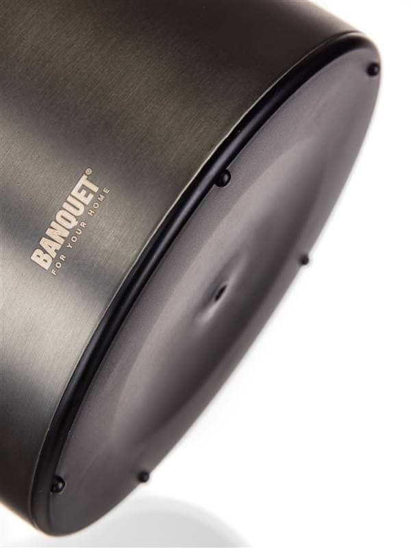 Termo čajnik Banquet METALLIC Platinum, 1,5 l od nehrđajućeg čelika s dvostrukom stijenkom održava tople i hladne napitke na idealnoj temperaturi. Vanjski dio kućišta izrađen je od visokokvalitetnog nehrđajućeg čelika 202 i plastike, unutarnji dio od nehrđajućeg čelika 304, a poklopac od plastike i silikona. Uporabna zapremina čajnika je 1,5 litara.