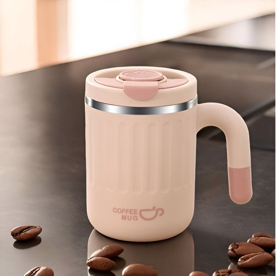 Termos šalica – moderan i praktičan dizajn, držač za ruke, materijal od nehrđajućeg čelika i plastike, čvrsti čep, posebne rupe omogućuju piće na slamku kao i kroz otvor, volumen 480 ml. Prikladno za kavu, čaj.