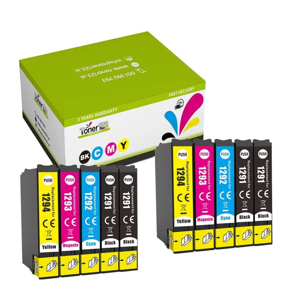 Toner123 Komplet Epson T1291 +T1292 + T1293 + T1294 zamjenske tinte (10) - 4× crna, 2× cijan, 2× magenta, 2× žuta