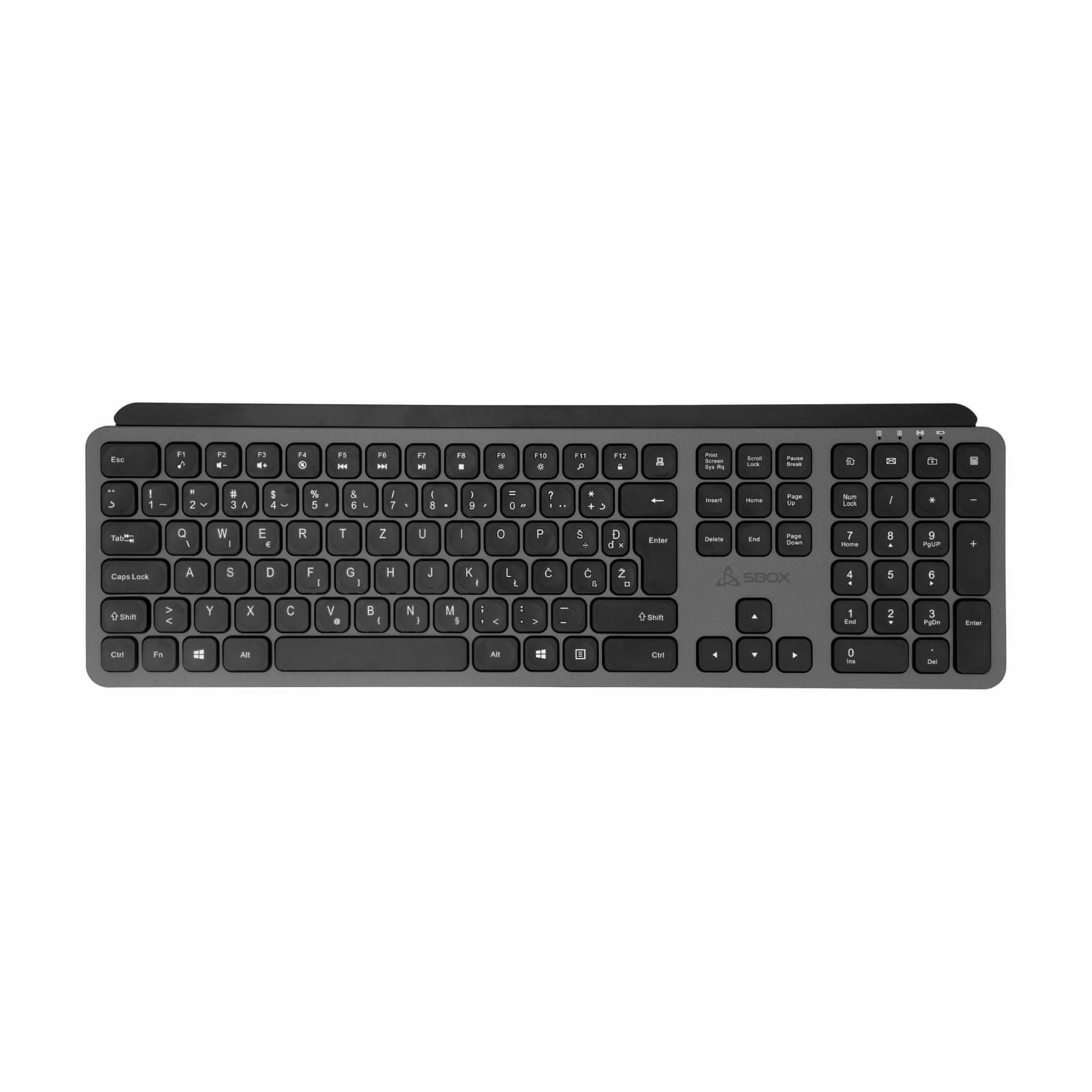 Paket uključuje: 1× SBOX tipkovnica bežična crno siva SLO WK-26