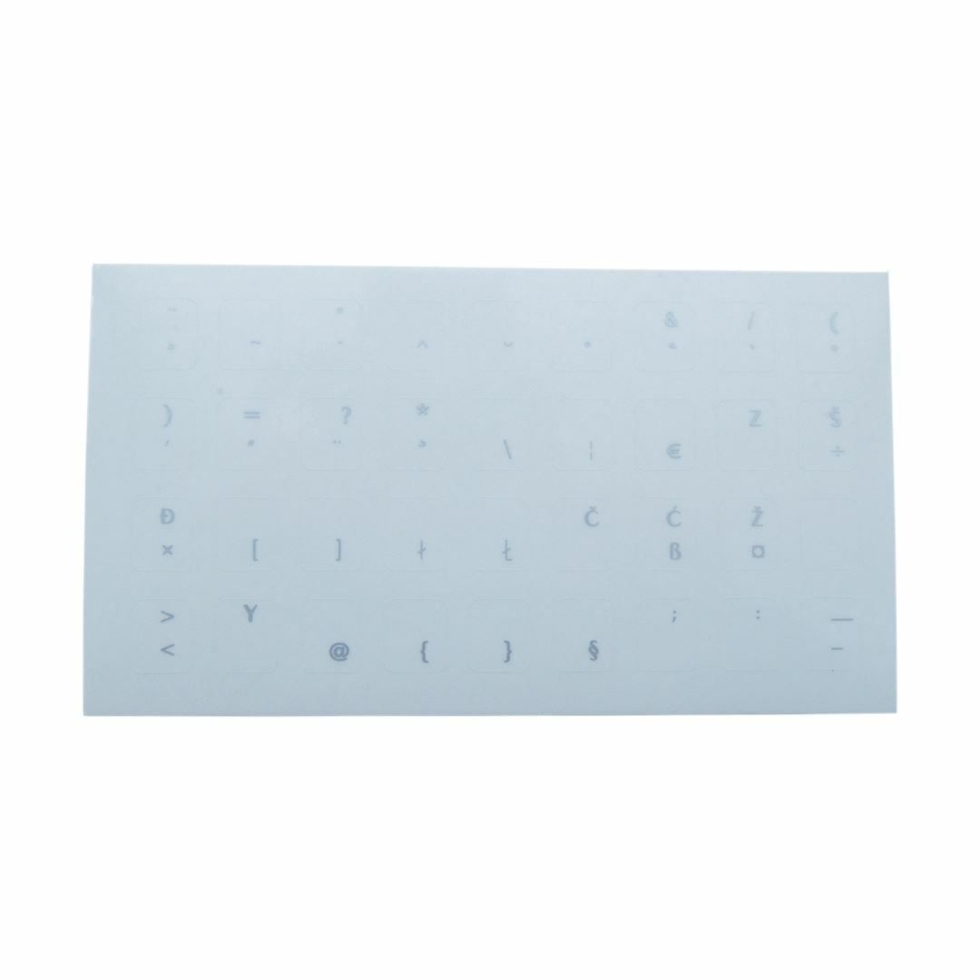 Oznaka za tipkovnicu, hrvatski znakovi (č,ž,š,.), prikladna za prijenosna računala i samostalne tipkovnice, prozirna.