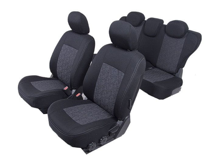 Nudimo potpuno novi dizajn s ukrasnim dvostrukim ubodom. Materijali imaju sve potrebne certifikate (trajnost, boje, suho i vlažno trenje, otpornost na svjetlost i temperaturu, gustoća, kompaktnost, skupljanje…). U proizvodnji se koriste talijanske tkanine i dizajni, a krojevi se rade na CAD/CAM računalnom krojačkom stolcu. Tehnika osigurava preciznost i potpunu prilagodbu. Tipični automobilski prekrivači izrađeni su za trajnu uporabu. Montaža je jednostavna.