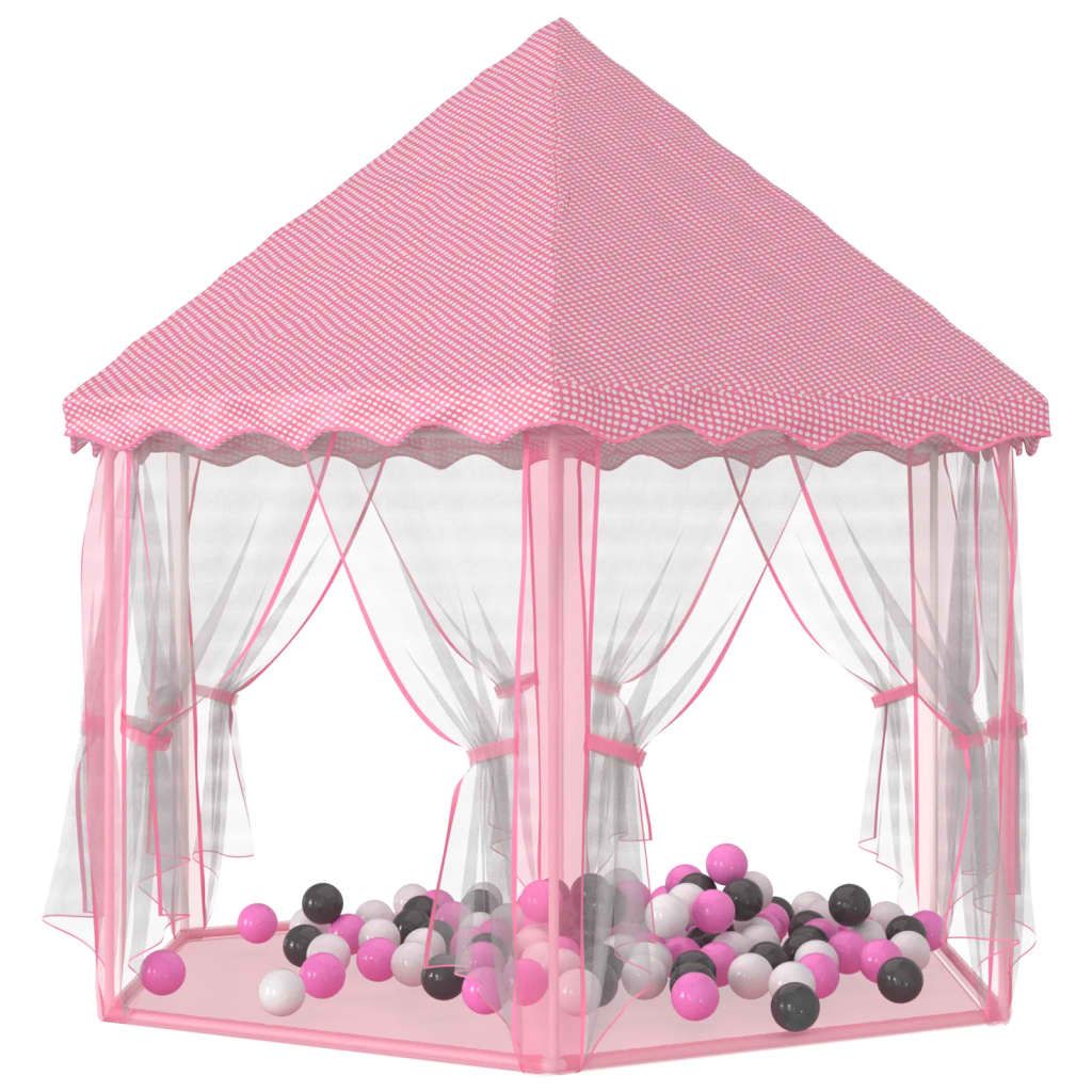 Vidaxl Šator za igru princeze s 250 loptica ružičasti 133 x 140 cm