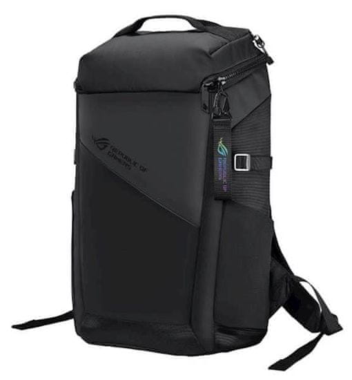 Asusov ruksak u modernom gaming izgledu i crnoj boji pogodan je za prijenosna računala dijagonale do 43,94 (17,3 "). Kapaciteta je 22 l, a u njega možete spremiti i tipkovnicu, miša i ostalu dodatnu opremu, jer ima nekoliko džepova. Zatvara se patentnim zatvaračem, a na gornjem dijelu ima odvojeni vodonepropusni džep za sve neophodne stvari koje želite imati pri ruci. Izrađen je od materijala koji odražava vodu i otporan je na ogrebotine. Više udobnosti tijekom nošenja nude mrežaste i zračne leđa i podstavljene naramenice s remenom za prsa.