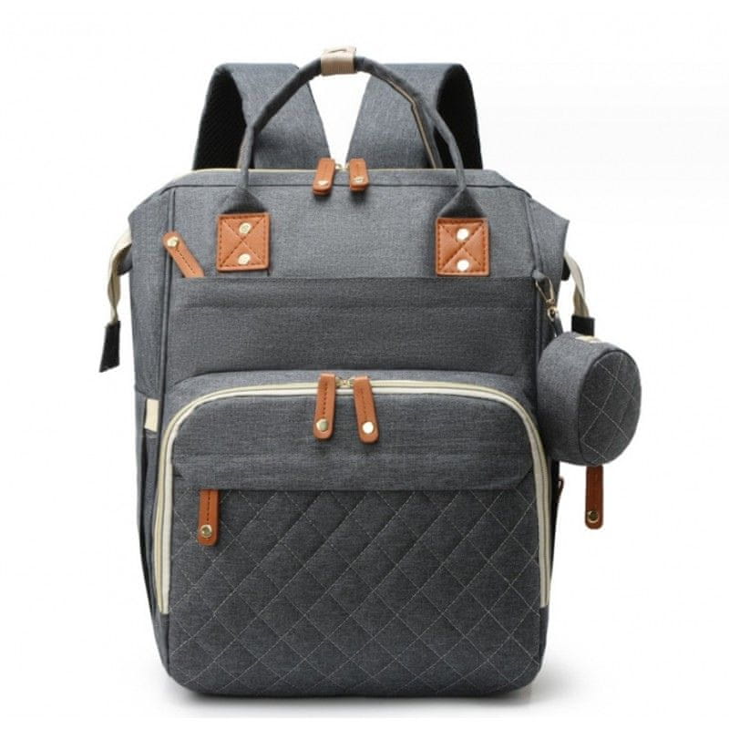Ruksak može poslužiti i kao torba za pelene, jer je dizajniran tako da pruža maksimalnu organiziranost i preglednost, što je neprocjenjivo kada se brine o djetetu. Uz mnoštvo posebnih pretinaca i džepova, svaka se stvar može spremiti na svoje mjesto – od pelena i odjeće, preko bočica, hrane i igračaka, do roditeljskih sitnica poput mobilnog telefona ili ključeva. Zahvaljujući dobro promišljenom rasporedu pretinaca, lako možete izbjeći traženje određenih stvari po ruksaku, jer sve ima svoje logično i lako dostupno mjesto.Značajke: