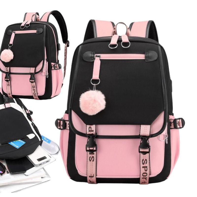 LIVEFY ruksak s USB kabelom Aura 1, ružičasta