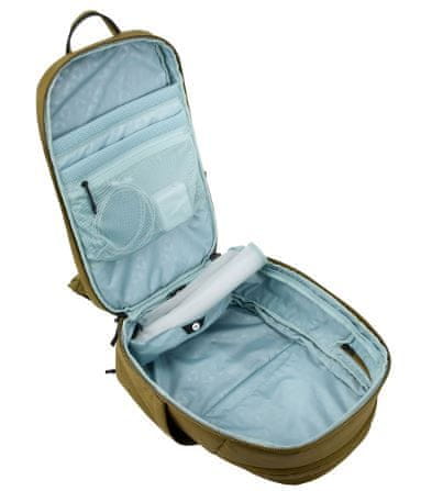 Višenamjenski ruksak Thule Aion od 28 L može se proširiti u putni ruksak od 32 L, tako da možete dobiti do 15% više prostora za pakiranje. Također ima praktičnu pregradu za odvajanje. Stražnja strana torbe se otvara poput kovčega, što olakšava pakiranje. Pregrada je obložena TPU podstavom koja pomaže organizirati vašu opremu dok sprječava širenje vlage, mirisa ili prljavštine. Ruksak ima posebne pretince za odlaganje elektronike i džep za bočicu. U slučaju da nosite teži teret, tu je i dodatni pojas, na području kukova, koji vam olakšava težinu.