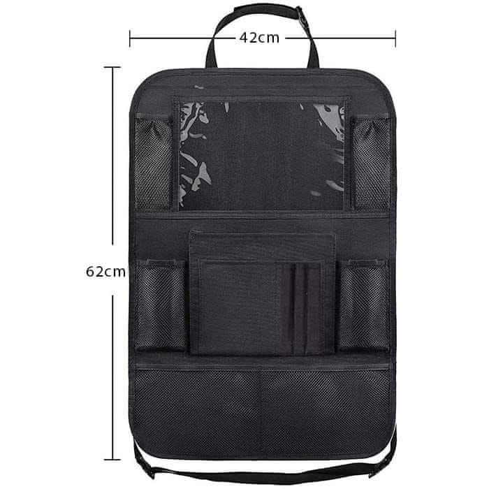 Praktičan organizator za sjedalo s čak 12 pretinaca omogućuje savršen red u vozilu. Vodootporna podloga štiti naslon sjedala, a držač za tablet pruža zabavu na dugim putovanjima. Univerzalan dizajn odgovara većini vozila. Cijeli opis
