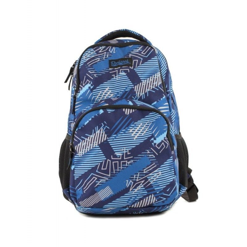 Plavi ruksak s različitim uzorcima pogodan je za djevojčice i dječake. Cijeli opis