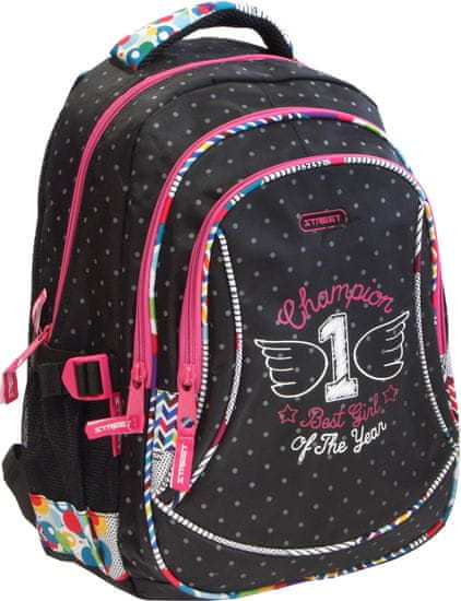 Ovalni ruksak Round Young Champion odličan je izbor za školu i slobodno vrijeme. Ruksak ima ojačane patentne zatvarače i podstavljen i prozračan dio za leđa. U ruksaku su pregrada za lakše raspoređivanje školskih potrepština i unutarnji džep. Ima zanimljiv uzorak.