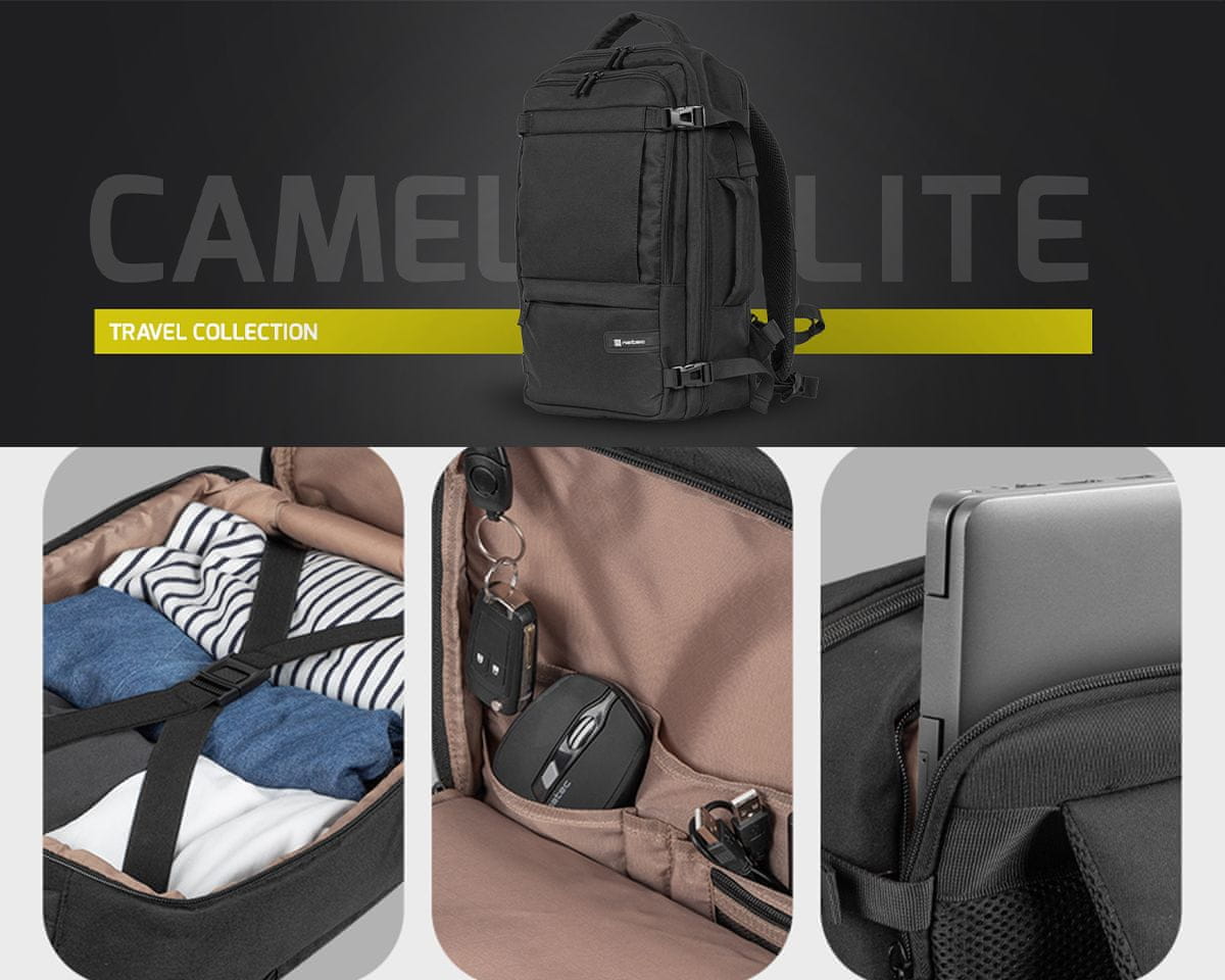 Svestrani 2-u-1 ruksak koji lako možete ponijeti sa sobom ili u avion kao ručnu prtljagu. Izvrstan je i kao svakodnevni ruksak ili kao oprema za duža planinarenja. S njim lako možete nositi do 15,6" (39,62 cm) prijenosno računalo, dodatke, dokumente ili odjeću. Jedan ruksak, 3 unutarnja pretinca, višenamjenska upotreba – to je Natec Camel Lite!