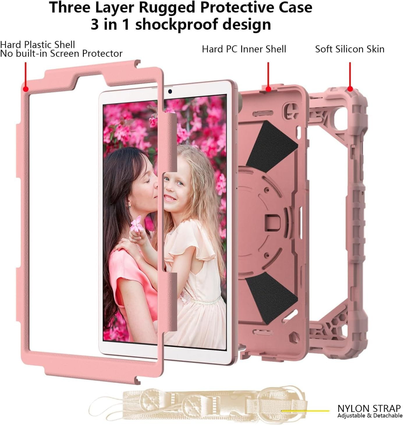 Nikcorp Izdržljiva zaštitna maska za iPad 10.2 (2019-2021) s rotirajućim stalkom od 360° i naramenicom, ružičasta