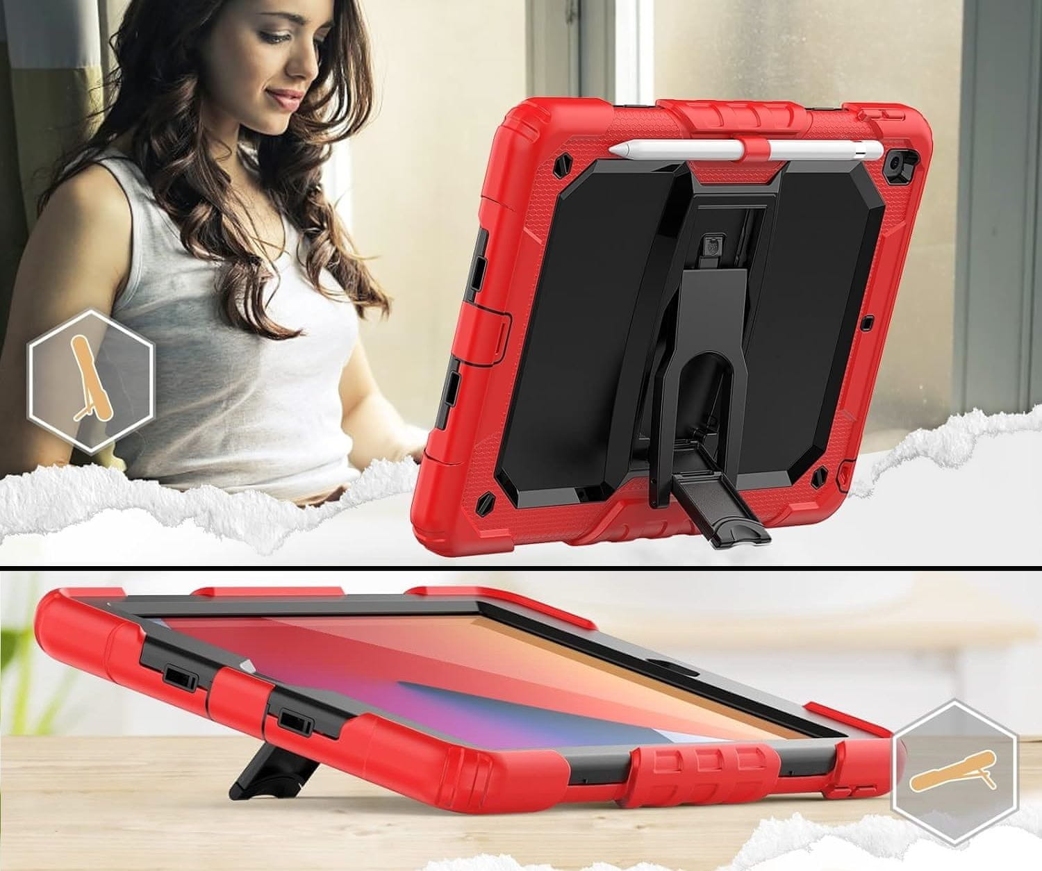 Oklopna Torbica za iPad 9/8/7 10.2" s Postoljem i Mjestom za Olovku Crvena