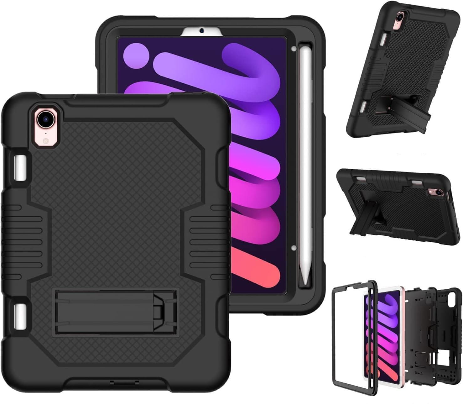 Pancerna Torbica za iPad Mini 6 8.3" s Postoljem i Mjestom za Olovku, Crna