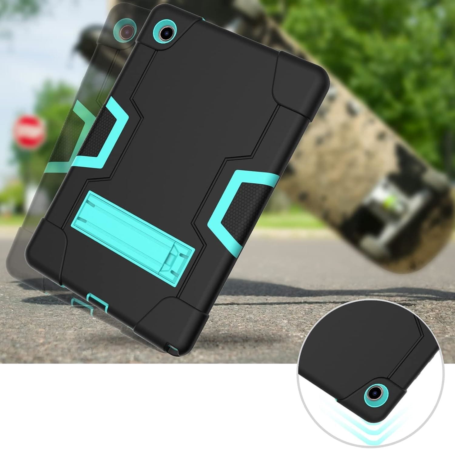 Ova iznimna torbica spaja izdržljivost, funkcionalnost i stil. Dizajnirana za maksimalnu zaštitu uređaja, torbica je izrađena od vrlo čvrstih materijala, uključujući silikon i plastiku. Trostruka, oklopna konstrukcija učinkovito štiti tablet od oštećenja poput padova, udaraca ili ogrebotina, osiguravajući potpunu sigurnost u svakodnevnoj upotrebi. Unatoč robusnoj izradi, torbica omogućuje pristup svim priključcima, što omogućuje praktično korištenje tableta bez potrebe za skidanjem kućišta. Torbica dodaje moderan i dinamičan izgled koji će zasigurno privući pažnju.
