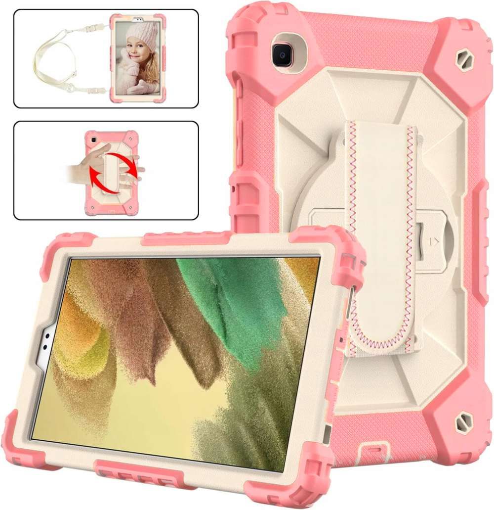 Maskica za iPad 10.2" s rotirajućim stalkom i remenom za rame, ružičasto