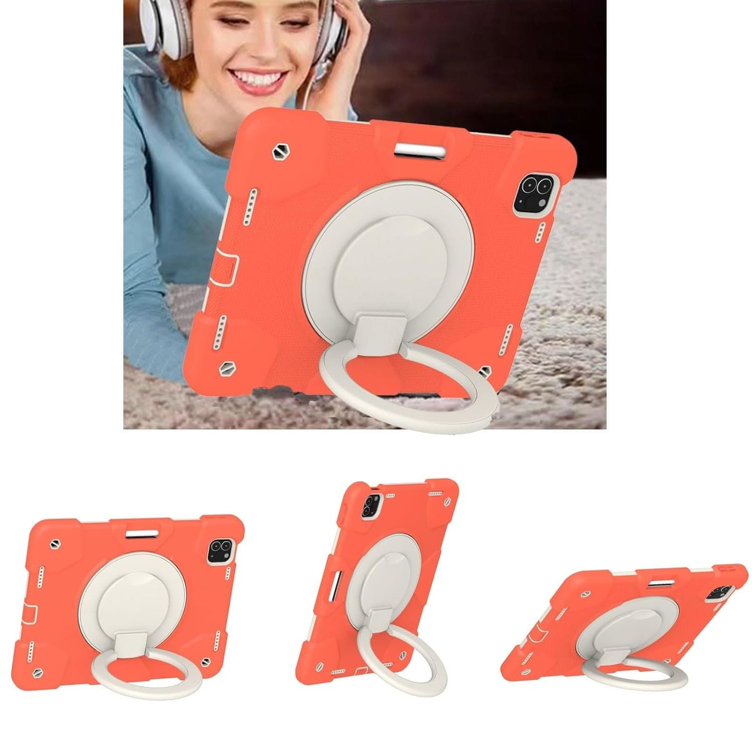 Izdržljiva narančasta futrola za iPad Pro 11" (3/2/1). Trostruka zaštita (PC+silikon) od udaraca i ogrebotina. Ima rotirajući 360° stalak, ergonomski držač, utor za olovku i podesivi remen za rame. Savršena za putovanja i vanjske aktivnosti.