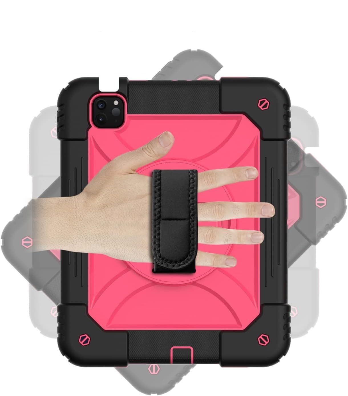 Nikcorp Robusna zaštitna maska za iPad Air 5/4 i Pro 11 s rotirajućim stalkom, držačem za ruku i naramenicom, ružičasta
