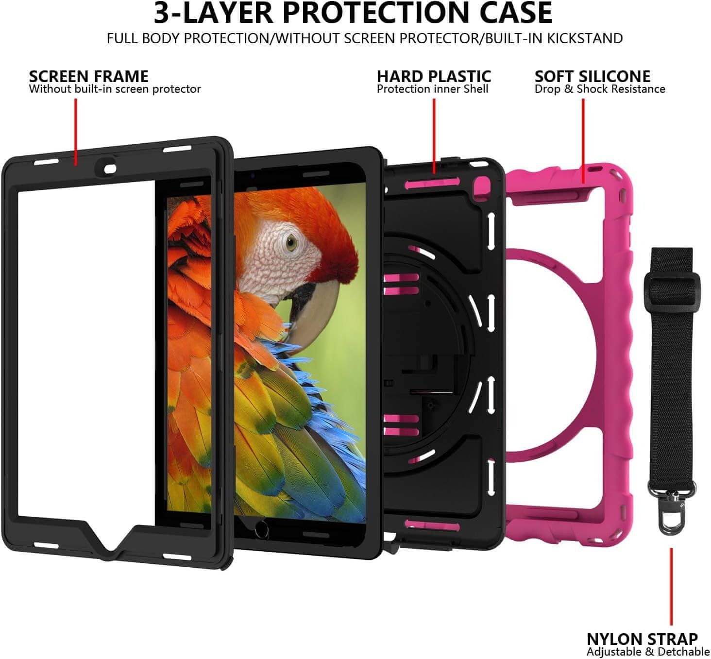 Nikcorp Robusna zaštitna maska za iPad 6/5/Pro 9.7" s rotirajućim stalkom i naramenicom, ružičasta