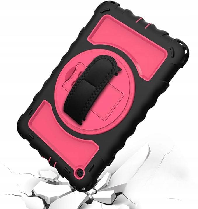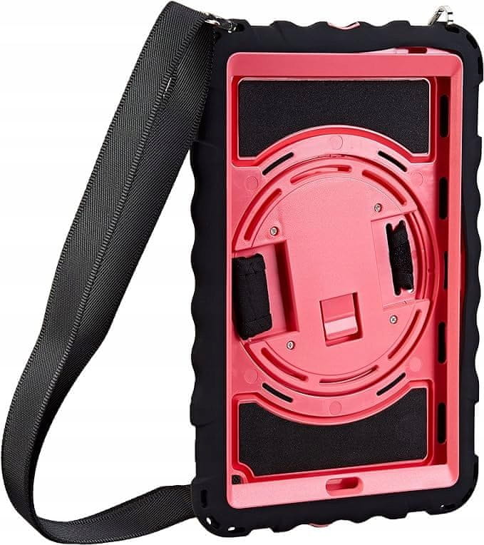 Ova futrola pruža vašem uređaju visoku razinu zaštite. Sastoji se od tri sloja: plastičnog PC kućišta i meke silikonske stražnje strane, što štiti tablet od ogrebotina, udaraca i vibracija tijekom svakodnevne upotrebe. Ova praktična futrola ima ugrađeno, sklopivo postolje koje se okreće za 360°, osiguravajući više kutova korištenja, što čini njenu upotrebu još udobnijom. Precizno izrađeni izrezi osiguravaju savršeno pristajanje priključcima i jednostavan pristup svim tipkama. Futrola je također opremljena podesivim i odvojivim remenom za rame, što omogućuje maksimalnu prenosivost, bez obzira gdje se nalazite. Zahvaljujući ovom svestranom kućištu, vaš će uređaj biti siguran tijekom planinarenja, izleta i drugih aktivnosti na otvorenom.
