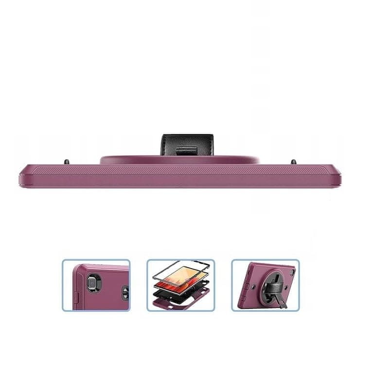 Trostruko ljubičasto maskica za A7 Lite T220 (T225) s 360° rotirajućim stalkom i podesivim remenom. PC+TPU zaštita od udaraca i ogrebotina. Ergonomski dizajn za sigurno držanje. Savršeno za putovanja i prezentacije.
