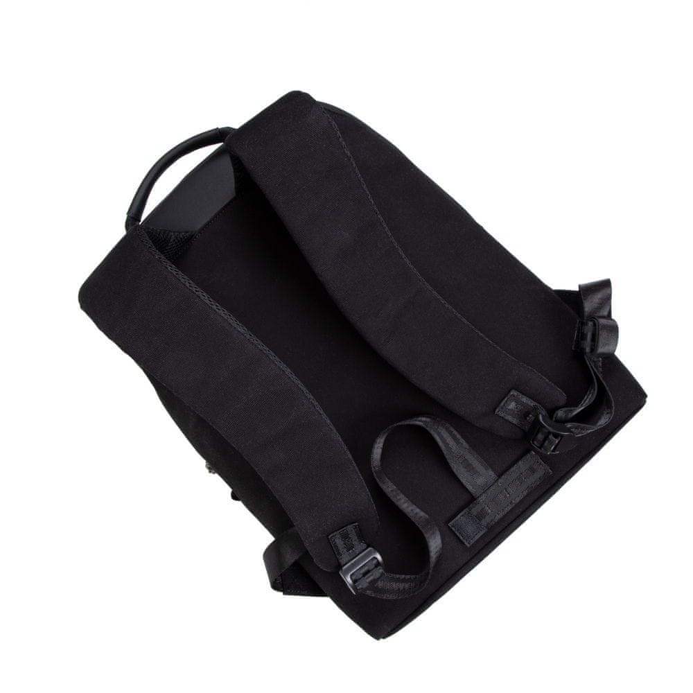 Ruksak je kompaktan, ali prostran. Unutra, u glavnom dijelu ima mjesta za knjige ili druge potrepštine i džep s patentnim zatvaračem za novčanik ili putovnicu. Opcije za pohranu također su s vanjske strane, gdje se nalazi džep sa patentnim zatvaračem s vlastitim magnetnim poklopcem, olovkom i organizatorom za telefon i odvojivim remenom za ključeve.