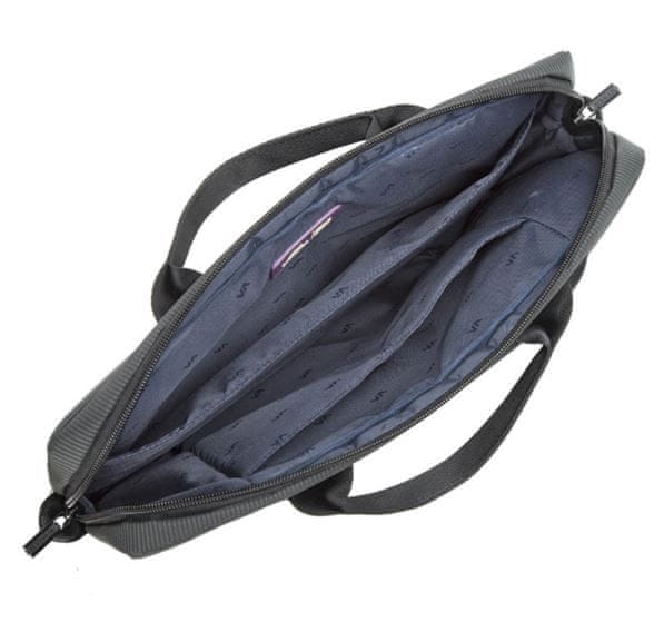 Modna tanka i kompaktna torba pogodna je za posao i putovanja. Torba za prijenosno računalo RivaCase 40,64 cm, siva (8730-GR) ima mjesta za prijenosno računalo 40,64 cm (15,6"), 25,66 cm (10,1") tablet i 2 unutarnja džepa za dodatke i osobne predmete. Zbog kontrastne obloge, torba je potpuno prozirna. Podesive naramenice osiguravaju ugodno nošenje