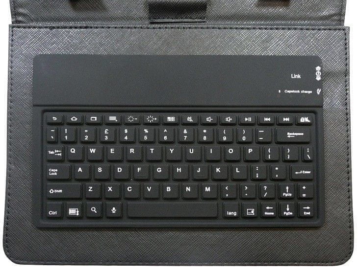 Univerzalna futrola za tablet s integriranom tipkovnicom. Tipkovnica je na engleskom jeziku bez hrvatskih znakova. Futrola od umjetne kože je čvrsta i izdržljiva. Tablet je učvršćen s pet držača, od kojih je jedan pomičan, pa se može fleksibilno prilagoditi visini tableta. Zatvorena futrola osigurava se elastičnom trakom. Na stražnjoj strani futrole, gdje se nalazi tablet, nalazi se stalak koji omogućuje držanje zaslona u uspravnom položaju.