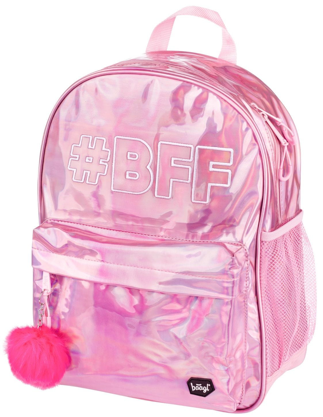 Ruksak FUN #BFF ima holografsku foliju, pa mijenja boju. Pogodan je za djecu prvih razreda osnovne škole. Ima ergonomski oblikovana leđa i udobno podstavljene naramenice te reflektirajuće elemente. Uz to, ima privjesak s lopticom.